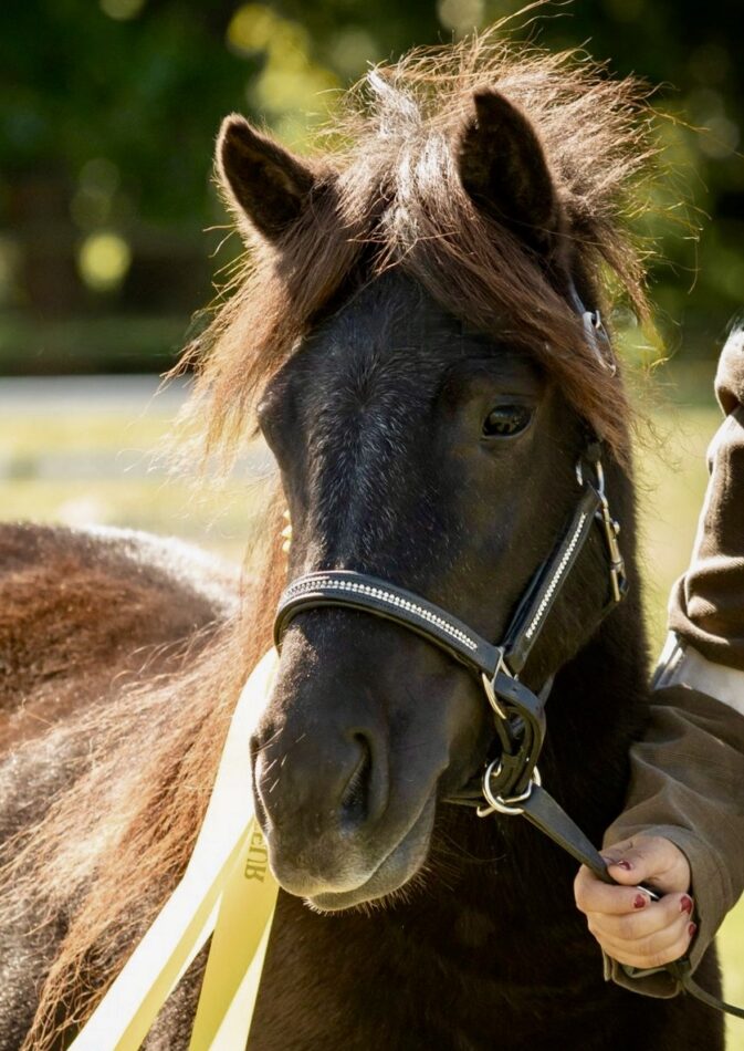 Elle est qualifiée PROMETTEUSE à 1an à Lignières, et de nouveau à Lignières PROMETTEUSE à 2 ans, avec une belle 4ème place/17 ! Elle est 4ème des juments noires de 3 ans à l’internatonal shetland pony show de 2025.